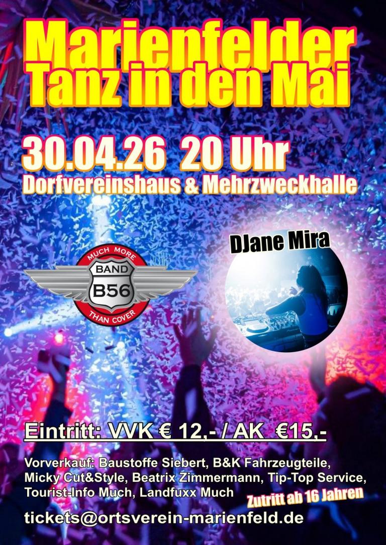 30.04.2026 | Tanz in den Mai Festzelt Marienfeld - 21:00 Uhr